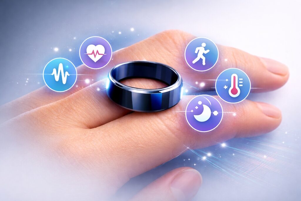 A smart ring is a small wearable ring used for tracking health, fitness, sleep, and other related activities. It is a small ring worn on the finger. The ring is small but has advanced sensors, a battery, and connectivity features.